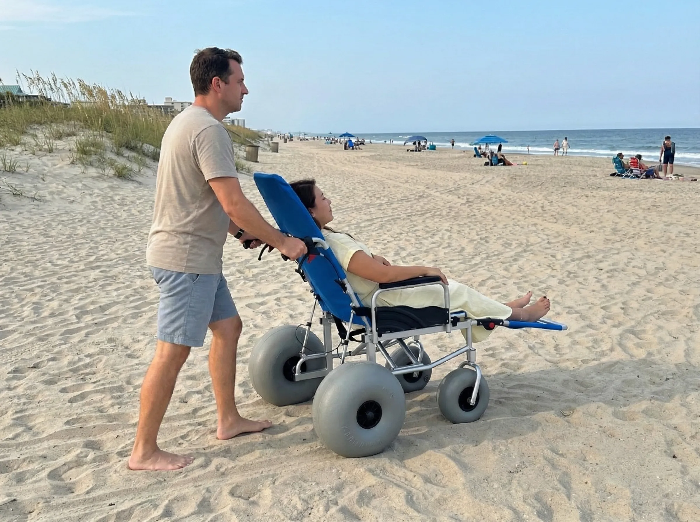 "Narrow tires act like knives, slicing into the sand. It makes pushing impossible and can leave users stranded and embarrassed."