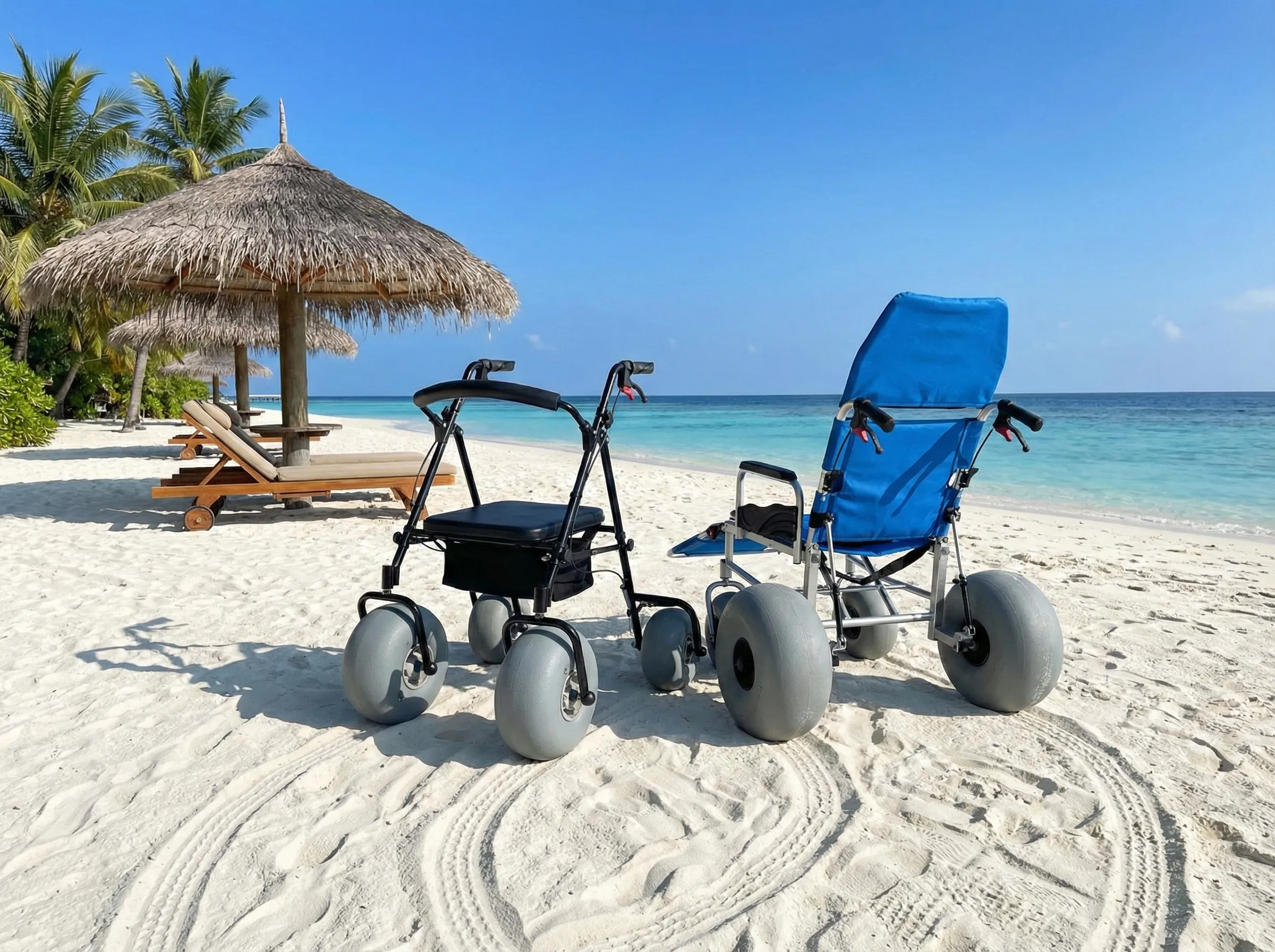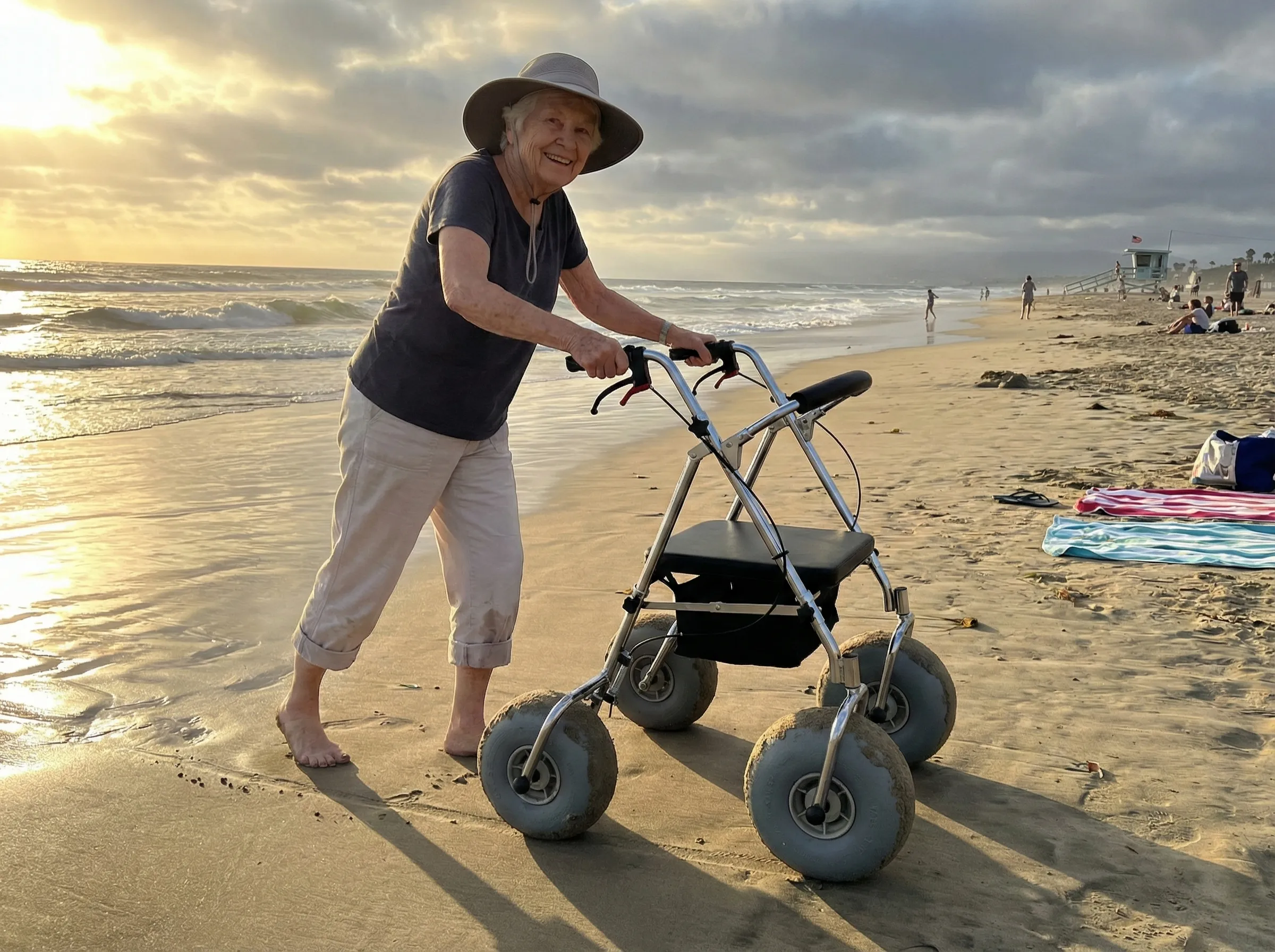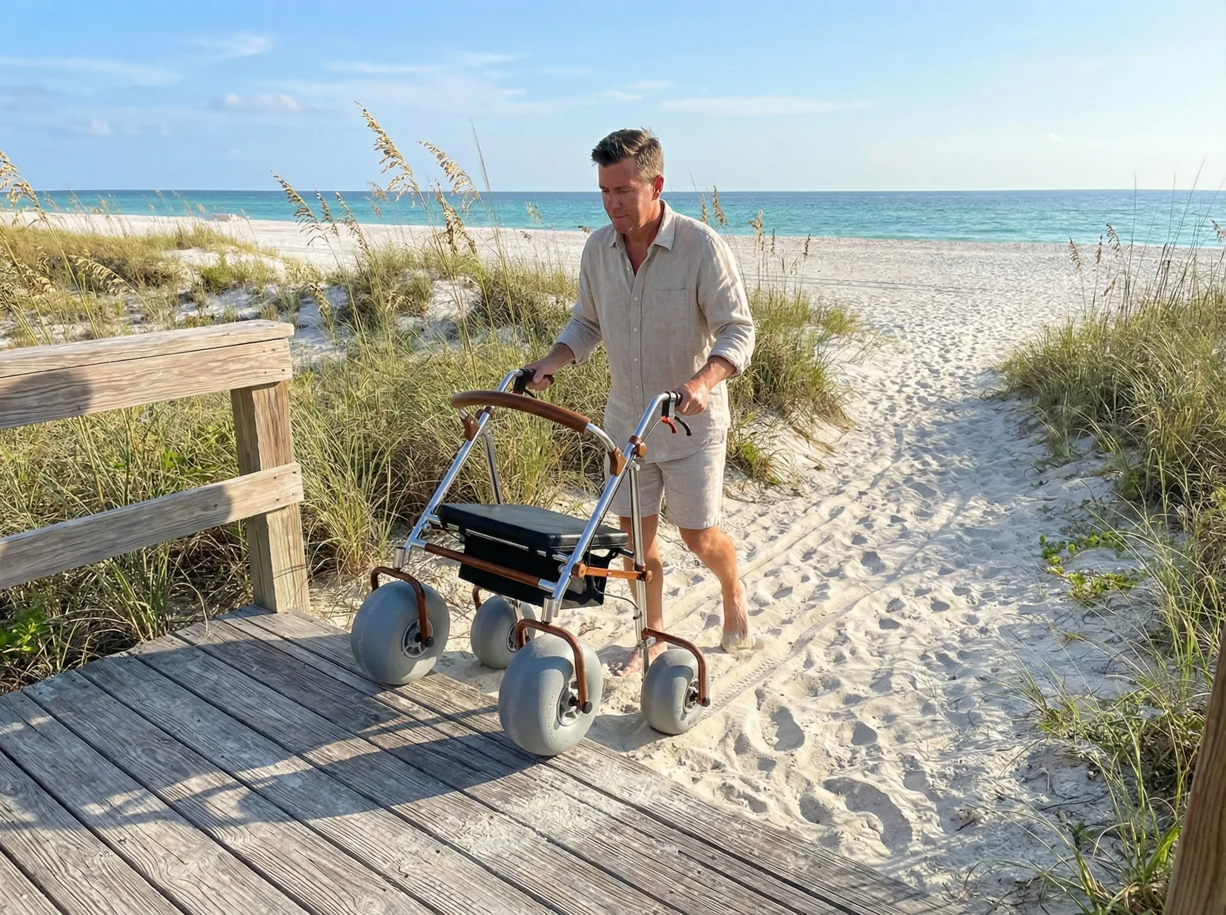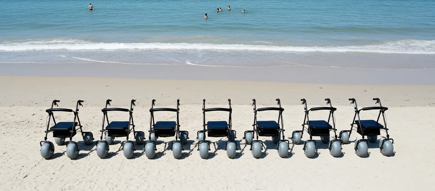 Lightweight Beach Walker designed for soft sand and coastal accessibility. Experience independent movement where traditional walkers fail.