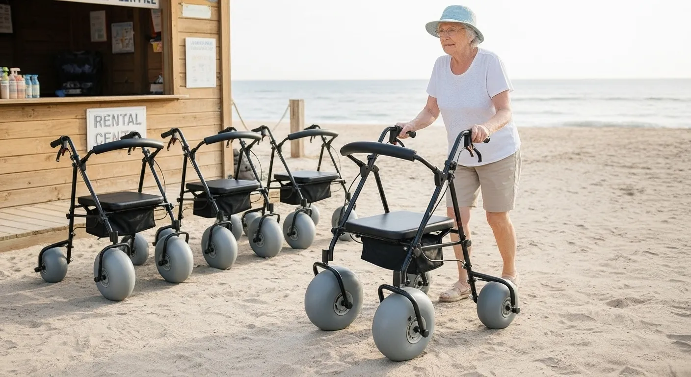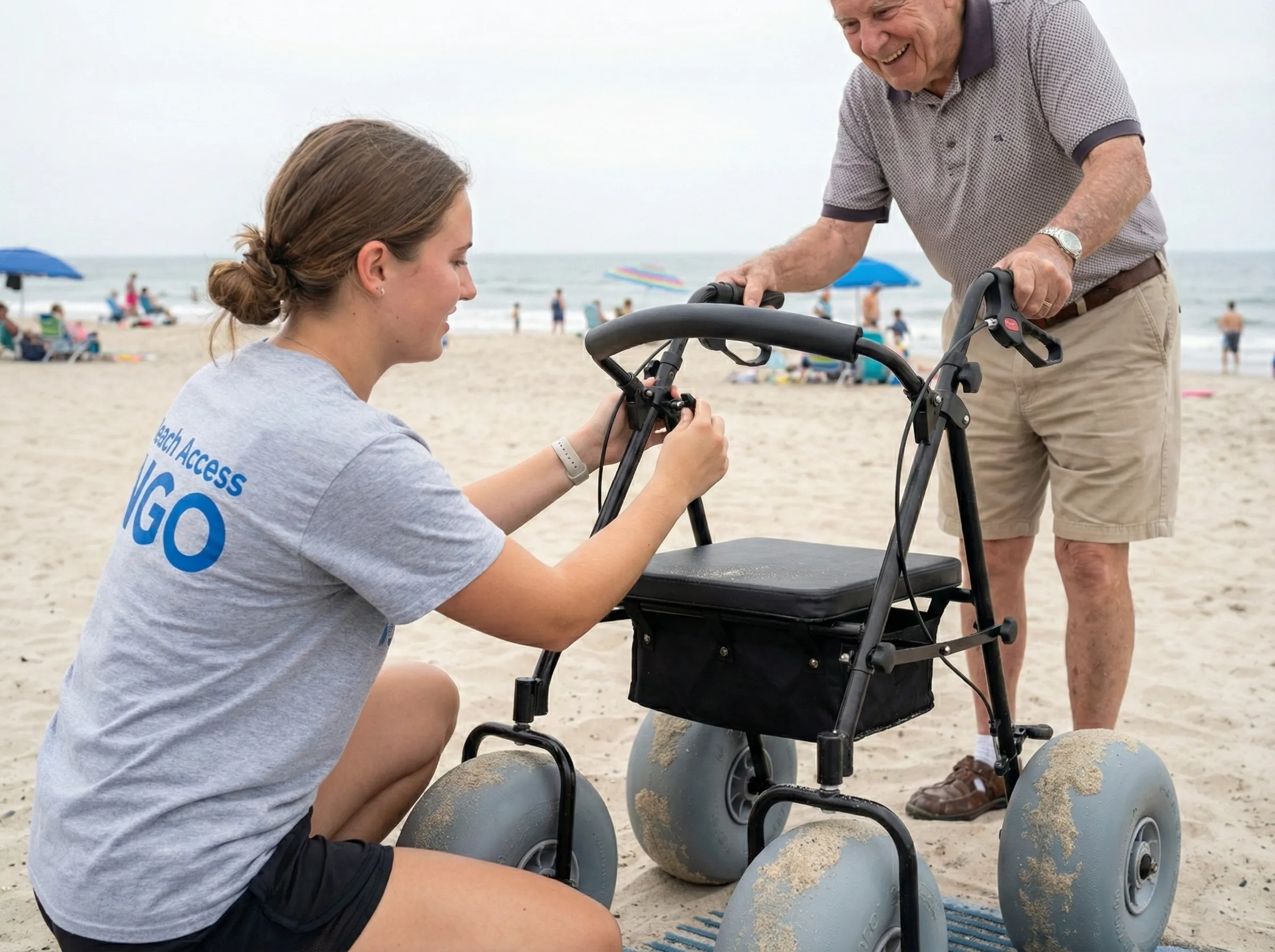 Beach equipment rental businesses expanding inventory to serve customers with mild mobility limitations who don't require wheelchairs