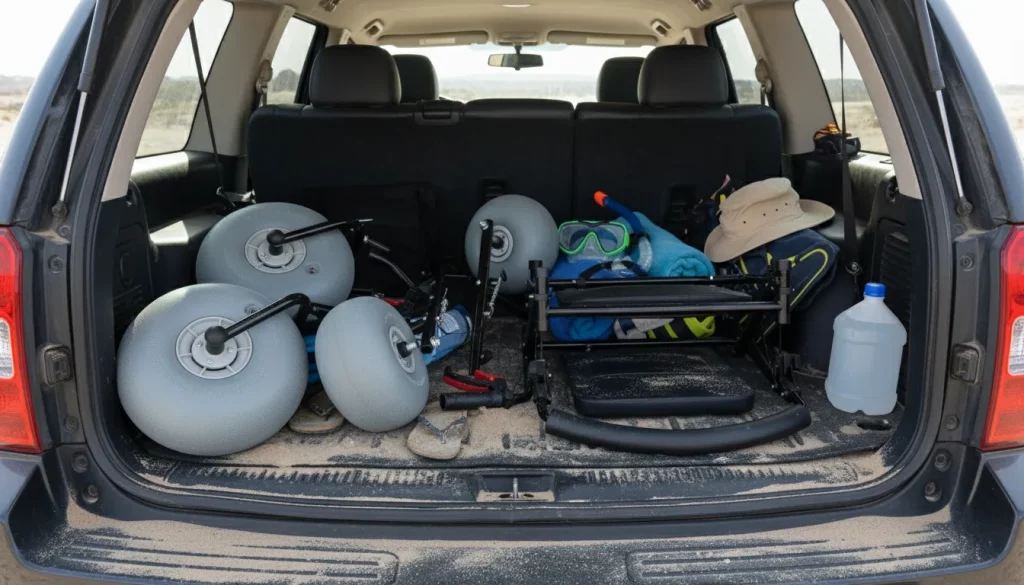 Most modern beach walkers utilize tool-free folding mechanisms that allow you to collapse the frame into a compact size for easy car transport. Since these beach walkers are often wider than standard models, the ability to fold them is vital for fitting them into a trunk or SUV. You should look for models that allow the wheels to be removed quickly if space is at a premium.