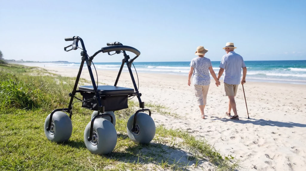Yes, specialized rollators can tackle beach sand provided they are engineered with high-flotation tires that distribute your weight across a wider surface area. When you use dedicated beach walkers, you no longer have to worry about the wheels digging into the loose ground. These devices are specifically designed to bridge the gap between paved boardwalks and the water’s edge. You can find a variety of these heavy-duty options in our latest products catalog.