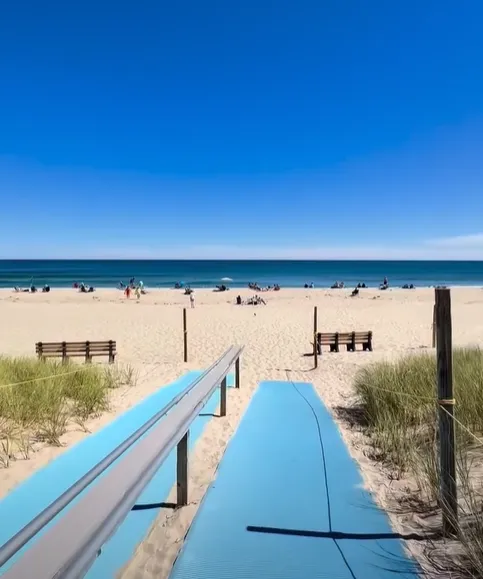 These mats are heavy-duty, slip-resistant roll-out pathways made from recycled polyester. They provide a firm surface for both manual and electric mobility devices to cross the dunes. Think about it: Without these mats, the soft coastal sand acts like quicksand for traditional thin tires.