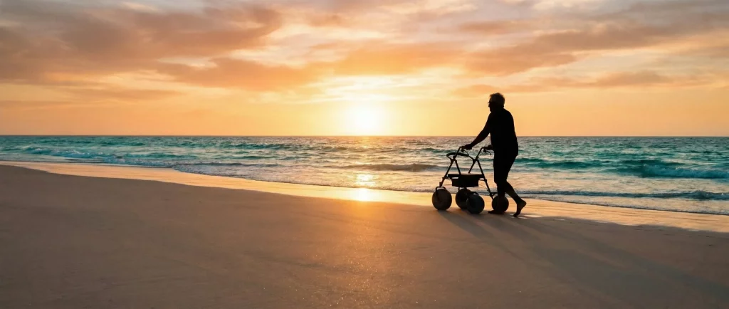 Seniors can maintain a high level of independence on the sand when they are equipped with a stable, easy-to-push all-terrain rollator. You will see an immediate boost in confidence as the fear of falling is replaced by stable support.