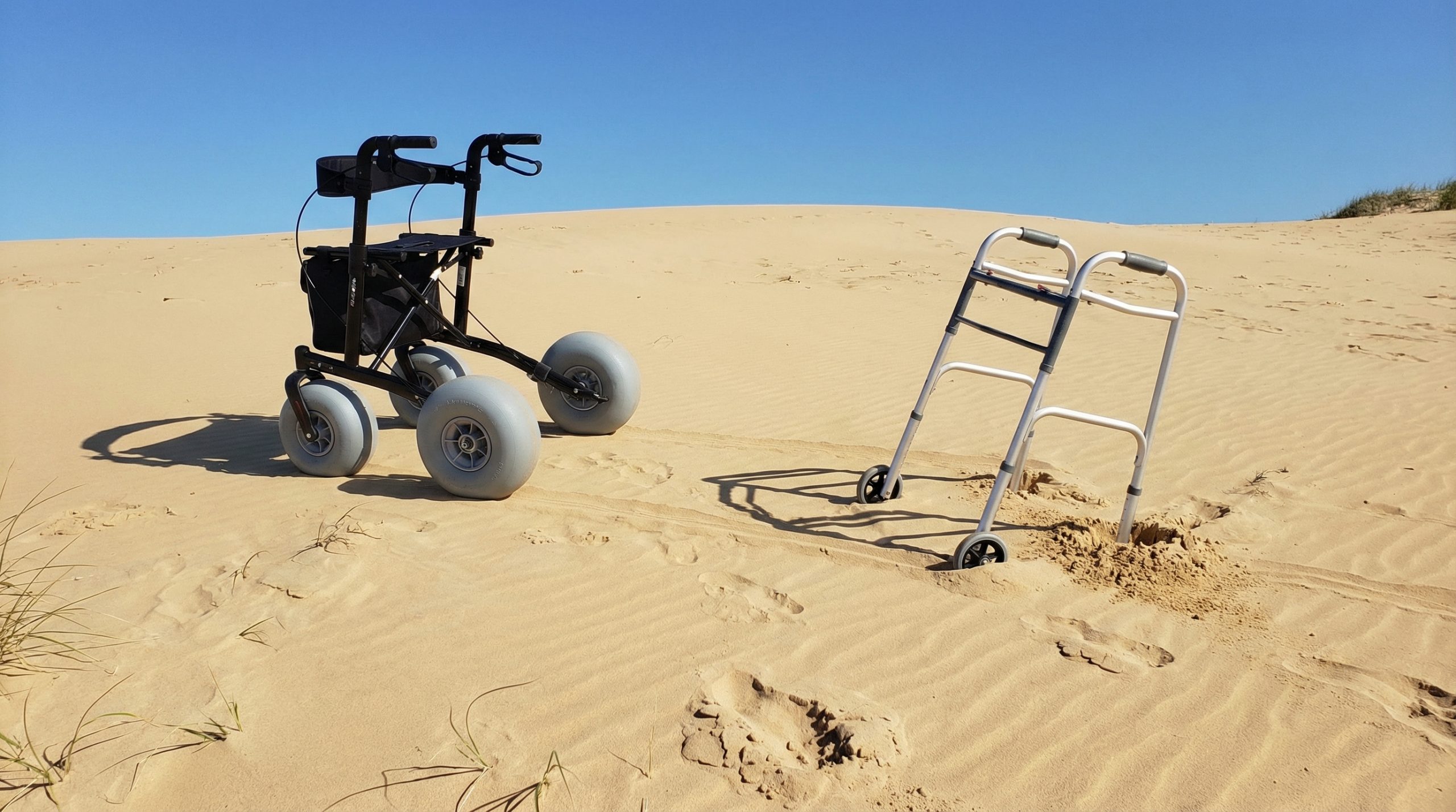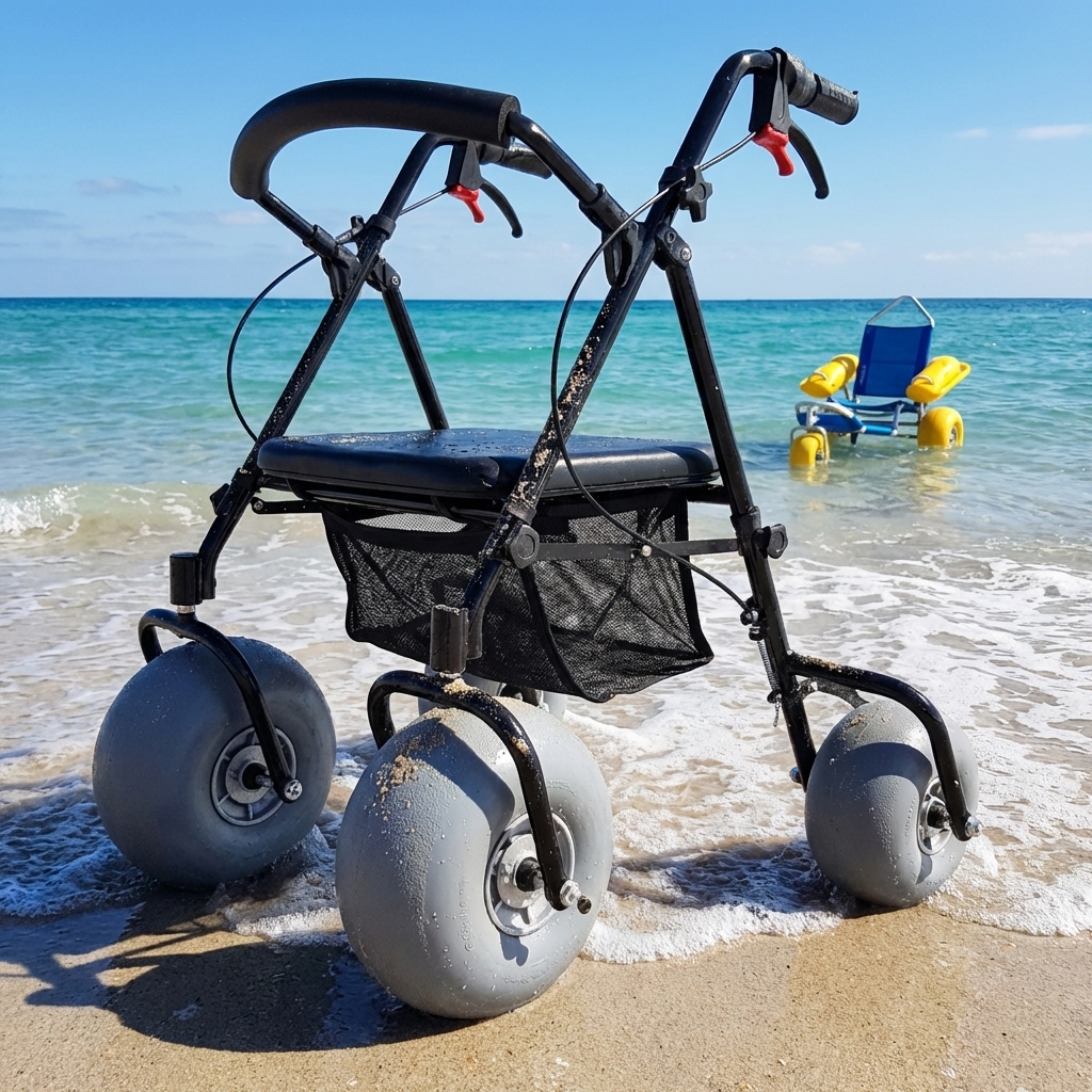 Standard walkers are largely ineffective on the beach because their thin wheels sink into soft sand, creating a significant safety hazard for users. For many seniors and individuals with limited mobility, a trip to the beach feels impossible. Standard rollators are designed for flat, hard pavement, but the moment they hit soft sand, the narrow wheels create a frustrating “anchor” effect.