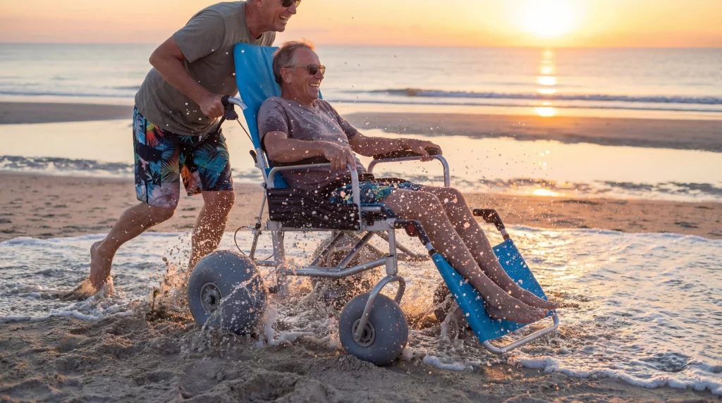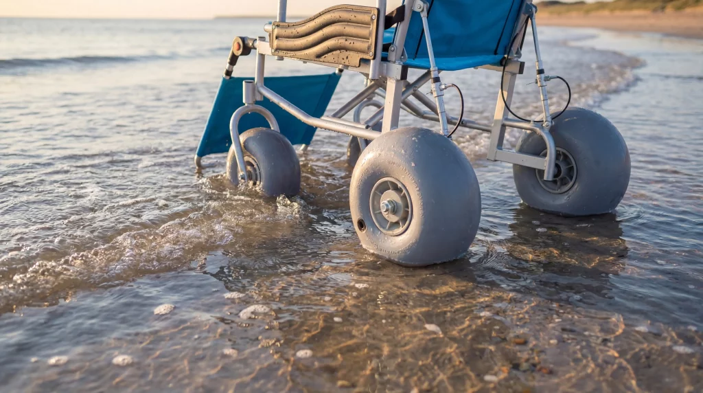 Essential features include large balloon tires, marine-grade frames, and high-visibility mat systems. These elements work together to conquer the unique challenges of a coastal environment. High-quality wheelchair beach access relies on specialized engineering that traditional mobility aids lack.