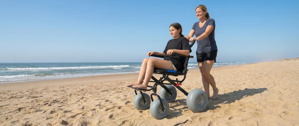 If you are an ambulatory user who needs extra balance, a beach walker with wide sand-feet is the best choice. These tools provide the support you need without the bulk of a full chair, allowing for more independent movement. Look: