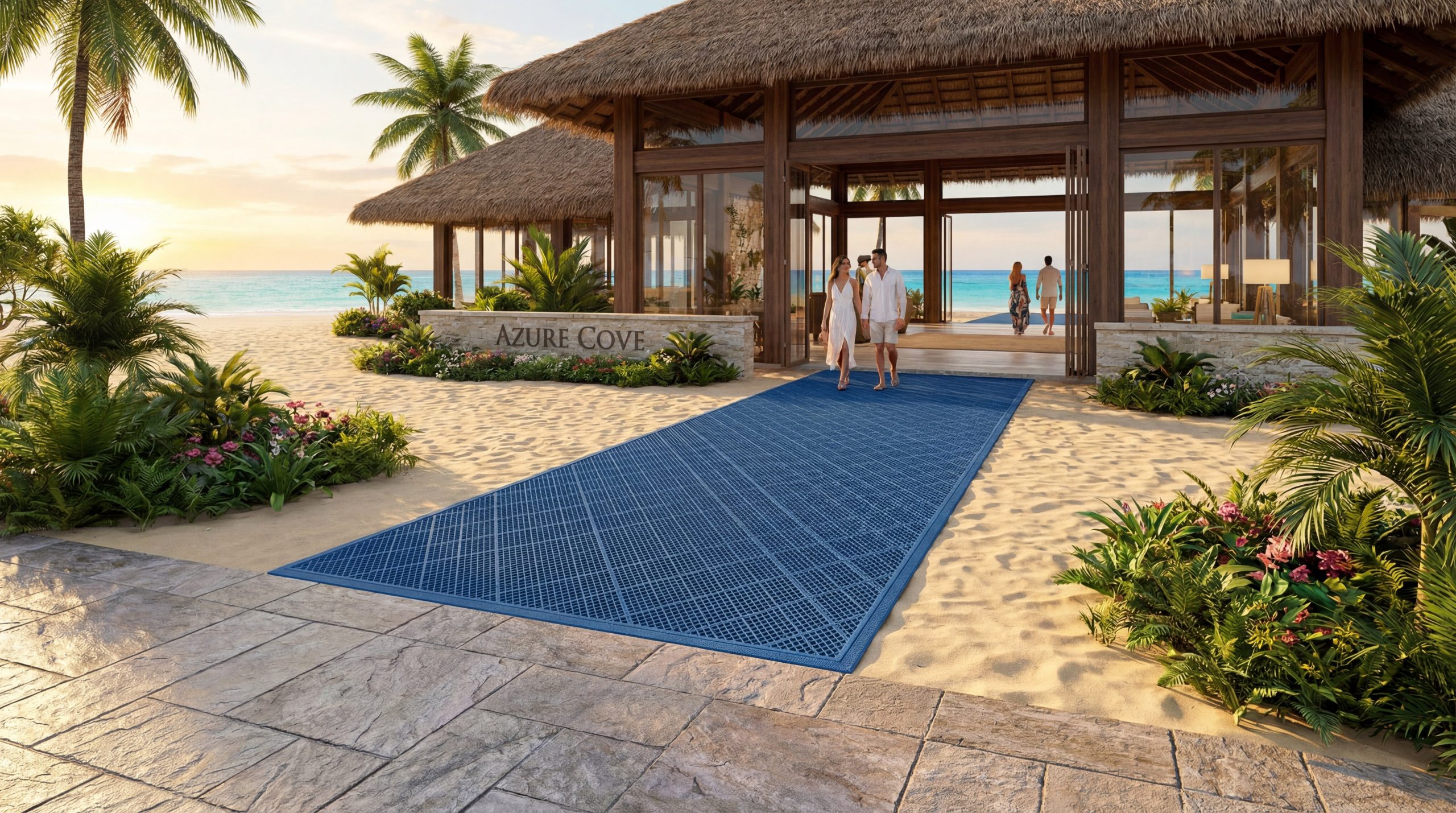 You will notice that high-quality mats use a diamond-plate or cross-hatch pattern to maintain grip even under a film of water. This is critical for users who are pushing their own chairs or for parents navigating double strollers. You can feel secure knowing that the surface won’t become slick like smooth plastic in the humid coastal air.