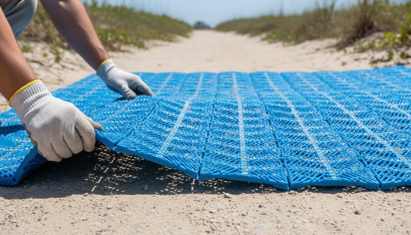 The best accessible beach mat is made from high-density, UV-stabilized polymers that resist the corrosive effects of saltwater and sand. Unlike fabric or mesh paths, solid polymer tiles do not fray or become sharp over time. These materials are chosen for their ability to maintain structural integrity under intense sun and heavy foot traffic.