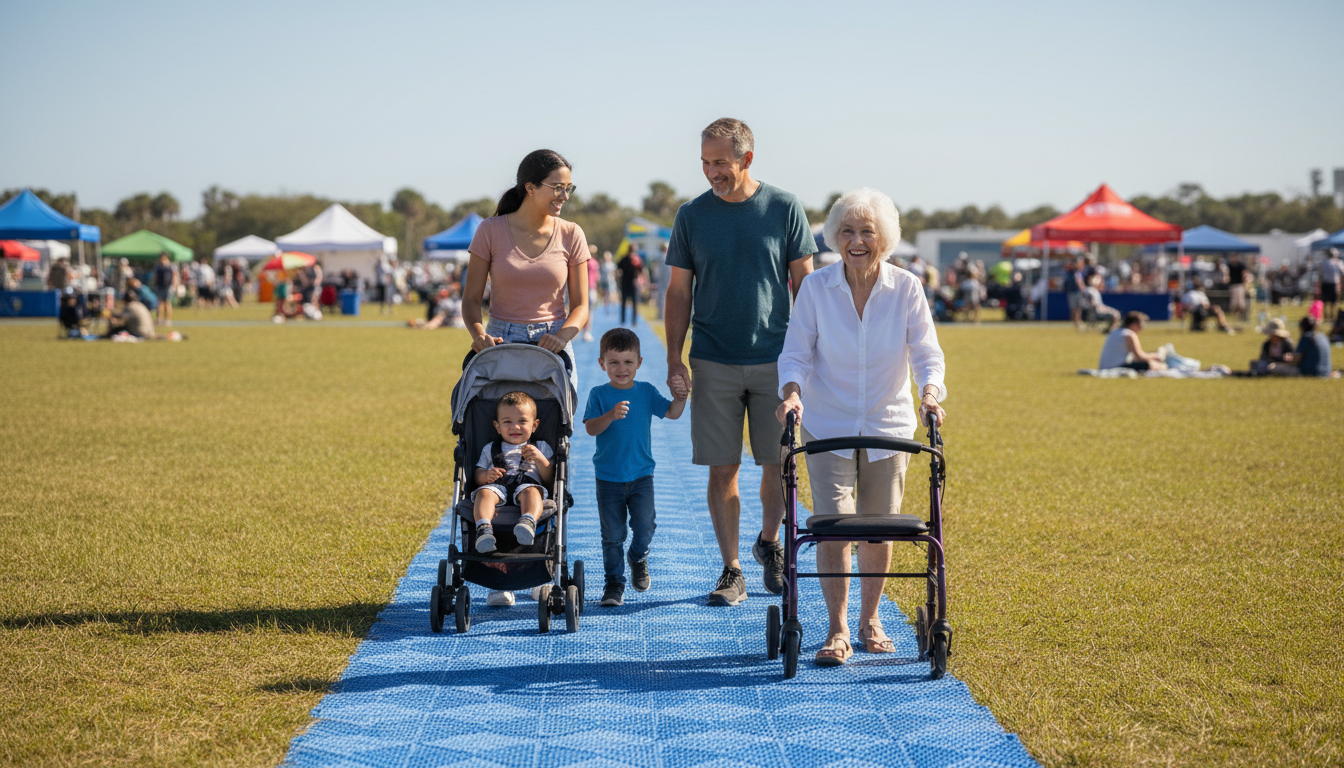 An Accessible beach mat is more than just a tool for wheelchairs; it is a gateway for multigenerational families to enjoy events together. When you install a wide, stable path, you allow grandparents using walkers and parents with strollers to move side-by-side with the rest of the group. This creates a cohesive social environment where no one is excluded due to their mobility status.