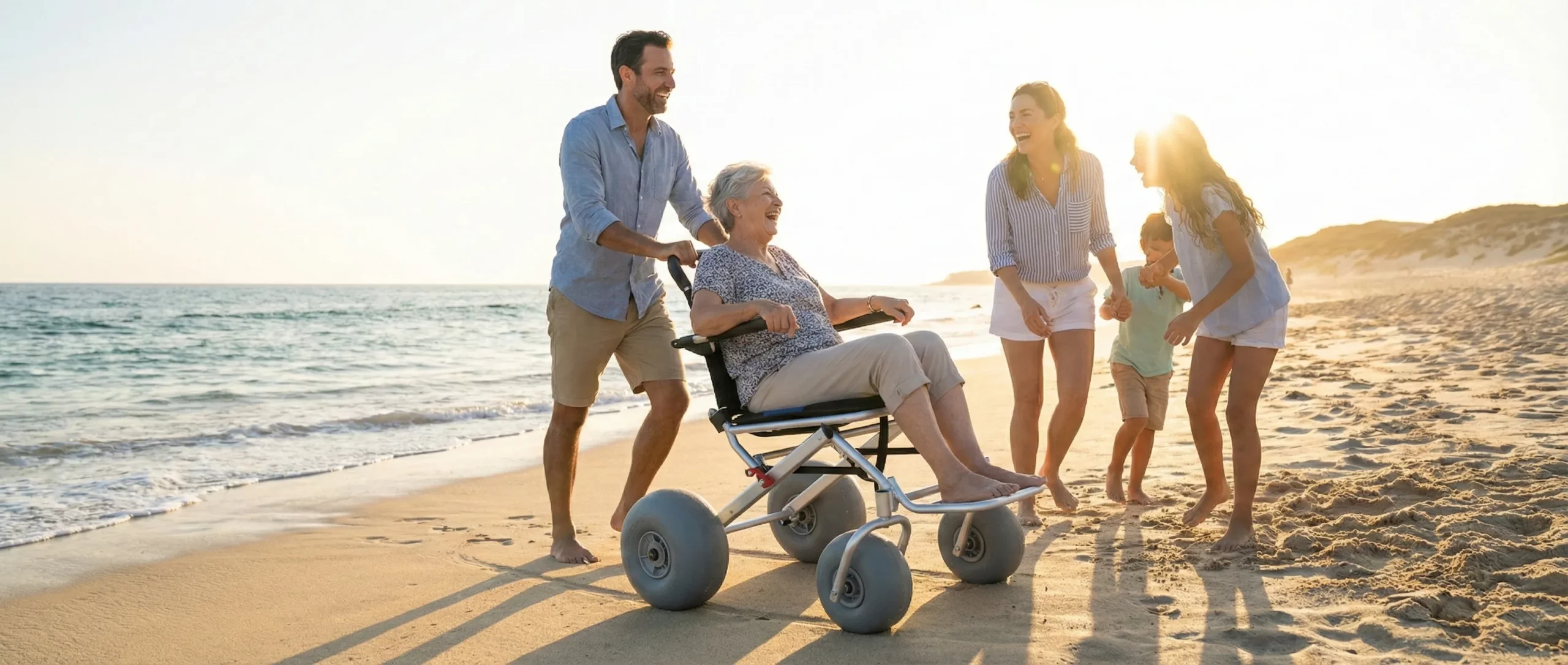 Families gain the freedom to enjoy beach vacations together. Transportable in standard vehicles and manageable by family members, enabling spontaneous beach trips and restoring coastal recreation independence.