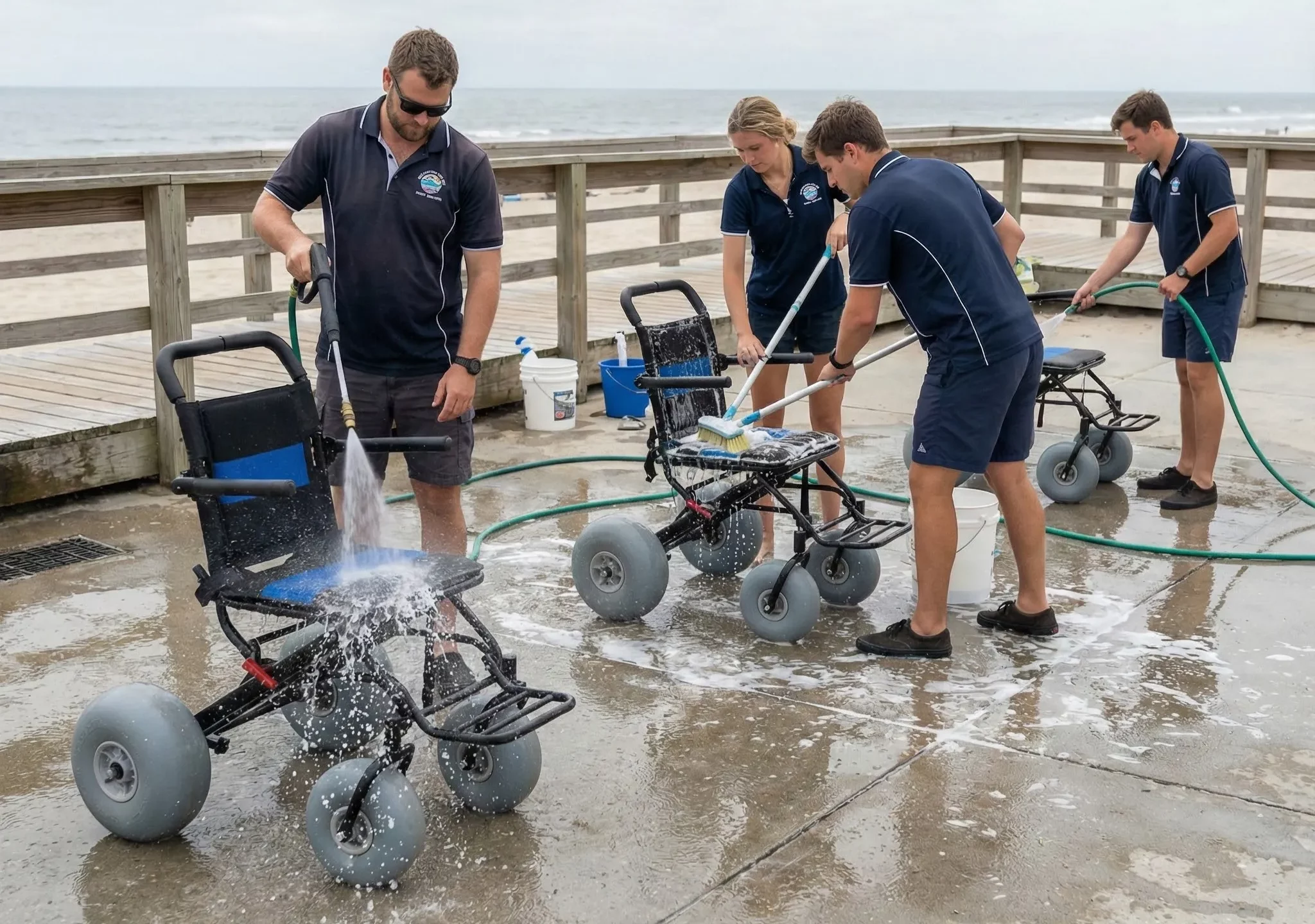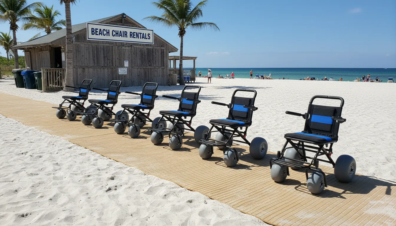 Rental operator serving tourist beaches added lightweight wheelchairs to umbrella and lounger inventory. High daily turnover required equipment that could be cleaned and redeployed quickly. Compact storage allowed integration into existing beachside kiosk infrastructure.