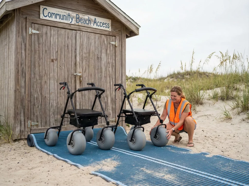 Key Takeaway: Specialized coastal aids prevent sinking by distributing weight over a wider surface area, making mobility effortless.
