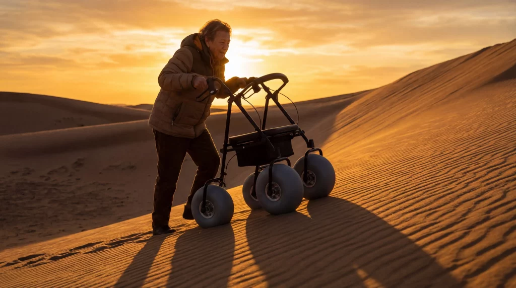 A specialized supplier provides all-terrain beach walker rollators designed specifically for soft sand to ensure senior and semi-ambulatory mobility near the coast. Many mobility aid users find that standard equipment sinks instantly into the shore, leading to physical exhaustion and social isolation. This frustration often forces you to stay on the boardwalk while others enjoy the surf. Fortunately, beach walkers provide the surface area needed to glide effortlessly over loose terrain.