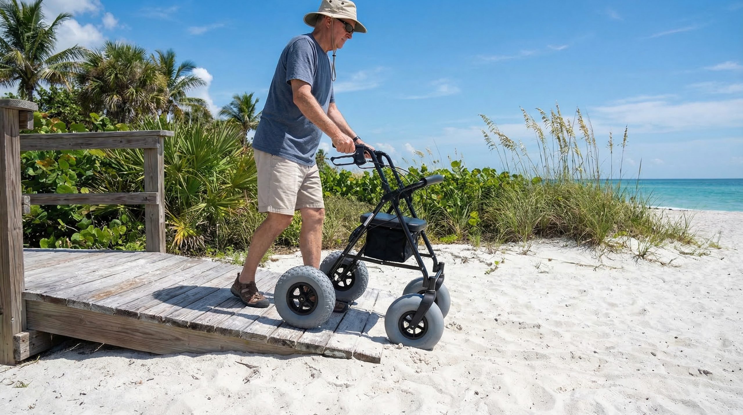 Think about it: If your walker only works on the firm sand near the water, you still have to struggle to get there. A truly all-terrain device handles every foot of the journey.